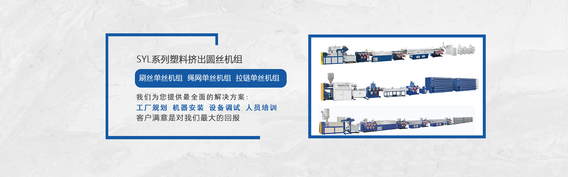 我司是專業生產塑料擠出圓絲、平膜扁絲機組等及其聚酯托幕線等配套附件、部件的專業化、正規化的企業,公司集行業專家的豐富知識,多年積累的經驗,結合國外同行先進技術,研發制造出系列圓絲擠出機組,在主要技術指標和性能上已處領先水平,我們正不斷優化管理,強化細節,使之能更好地為廣大用戶提供從技術、制造到工藝的全方位服務。